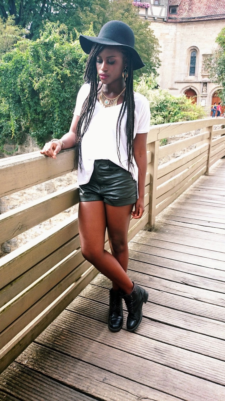 Helloo my loves! So the post before the last one, I showed you some inspirational looks as possibilities for how to style hats. What I am showing you today is my kinda “hat look” paired with some leather shorts and a loose simple shirt.I actually shot this way before I came up with the hatspirational post, but then decided to post it before.